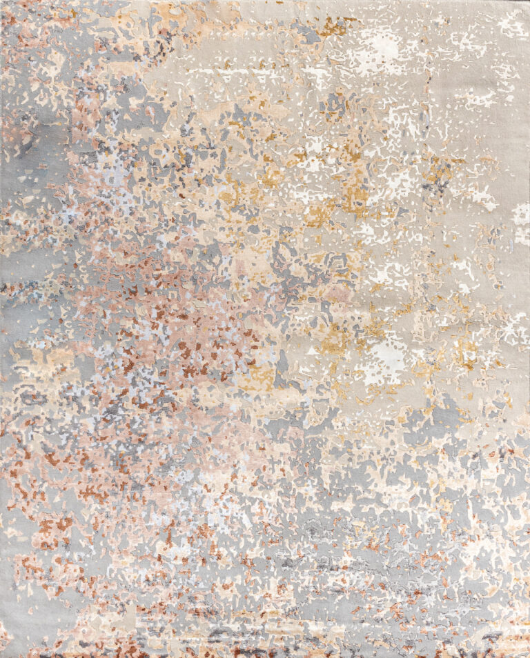 Коллекция ручных ковров из Индии недаром носит название CHROME GOLD. В утончённых абстрактных дизайнах преобладает прохладный оттенок хрома, придающий рисунку блеск и глубину. В него вплетаются ноты лазури, золота и марсала.