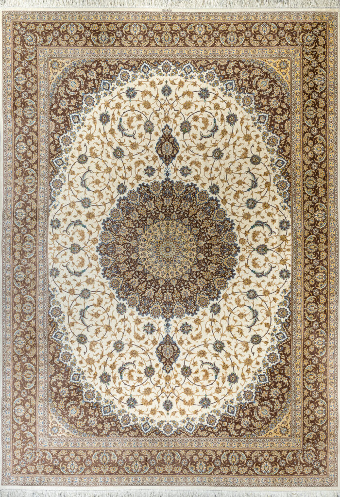 Это коллекция ручной работы из иранского Кума, знаменитого на весь мир своими шедеврами. Здесь ткут самые утончённые, богатые красками персидские ковры – предмет охоты коллекционеров. Мастерство ткачей придаёт изделиям невероятную ценность. А на создание одного ковра уходит до трёх лет.