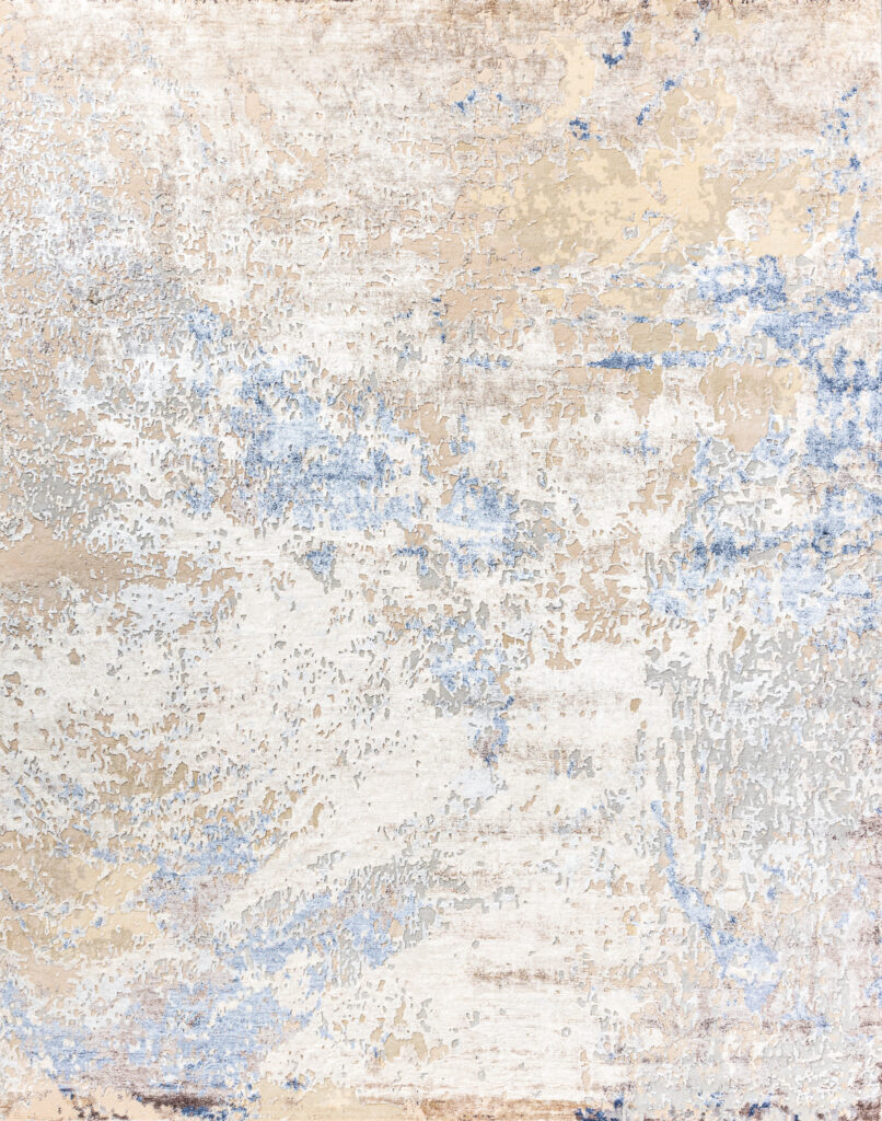 Коллекция ручных ковров из Индии недаром носит название CHROME GOLD. В утончённых абстрактных дизайнах преобладает прохладный оттенок хрома, придающий рисунку блеск и глубину. В него вплетаются ноты лазури, золота и марсала.