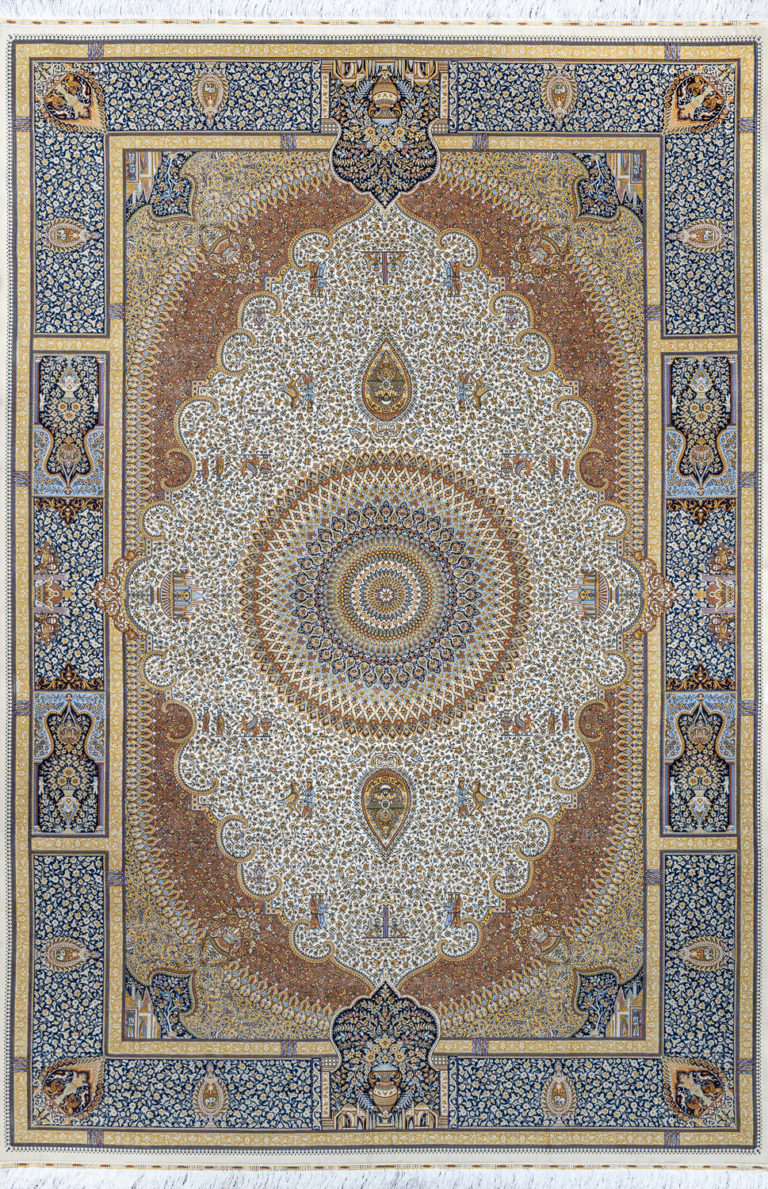 Материал пряжи 一 натуральный шёлк с добавлением модала или акрилика. Сочетание, которое делает ковры MASTERPIECE QUM блестящими, нежными, утончёнными. И совершенно неотличимыми от ручных изделий! Такой ковёр преобразит интерьер, наполнит его сиянием и подарит своему обладателю самые трепетные тактильные ощущения.