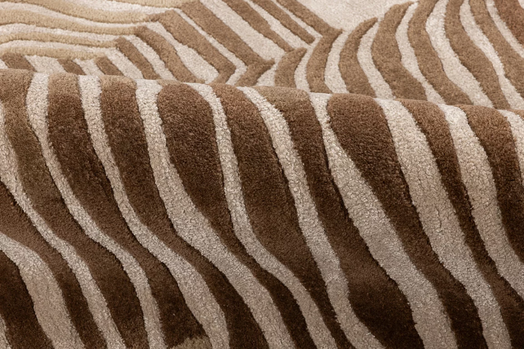 Ковры сотканы из шерсти с арт-шёлком. Тактильная привлекательность достигается за счёт технологии ручной набивки, благодаря которой поверхность ощущается плотной и упругой. Натуральный шерстяной ворс дарит тепло, в то время как нити арт-шёлка добавляют поверхности легкого блеска, с которым изделия LUCIO выглядят ещё более интересными. Ковры привнесут в ваш дом выразительную эстетику и индивидуальность.