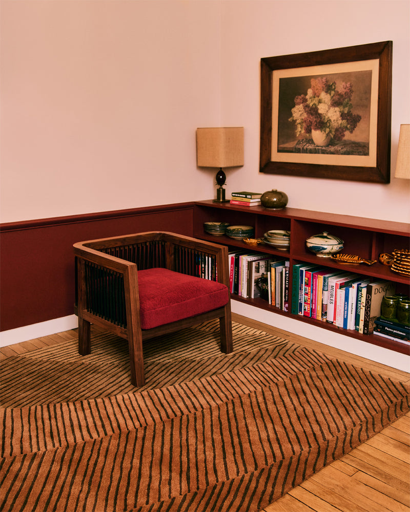 Ammonite Ochre — фирменная работа Реда Амалу для Toulemonde Bochart — воплощает собой совершенство современного дизайнерского искусства. Этот охристый шерстяной ковёр, выполненный методом ручного тафтинга, раскрывает композицию из плавных линий, где техническое мастерство встречается с чистой элегантностью.
