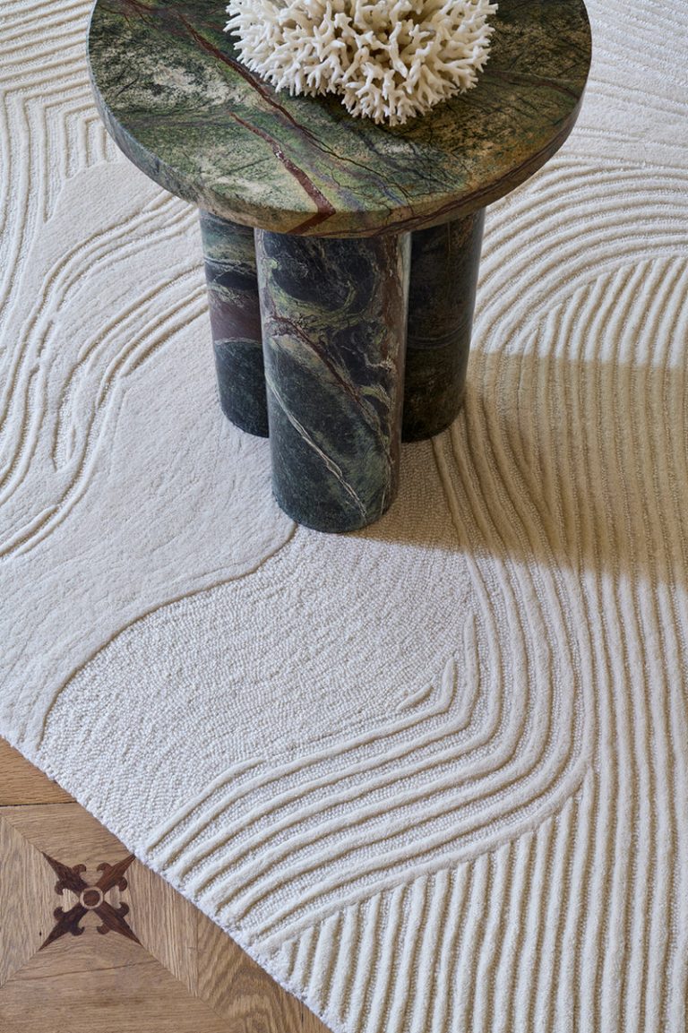 Шерстяной ковёр Mistral Ivoire ручного тафтинга идеально демонстрирует мастерство Toulemonde Bochart. Созданный в нашем студио, он выходит за рамки декора и становится текстильной скульптурой: его рельеф напоминает мягкое движение воды и следы пены на средиземноморском берегу.