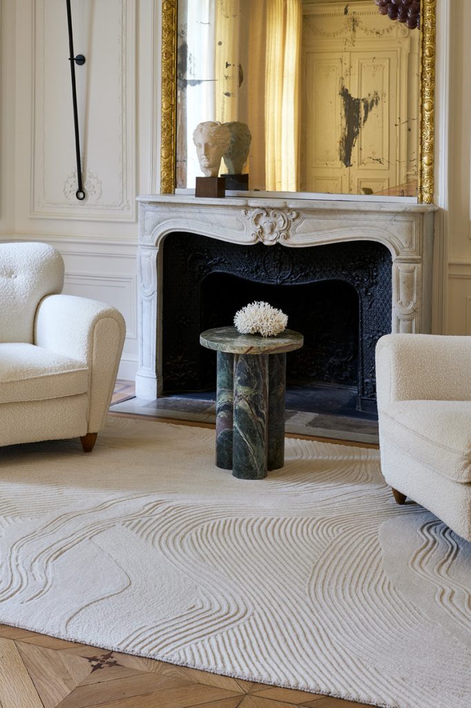 Шерстяной ковёр Mistral Ivoire ручного тафтинга идеально демонстрирует мастерство Toulemonde Bochart. Созданный в нашем студио, он выходит за рамки декора и становится текстильной скульптурой: его рельеф напоминает мягкое движение воды и следы пены на средиземноморском берегу.