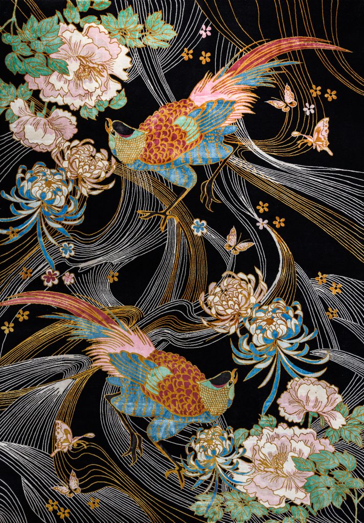 Вас ждут грациозные восточные образы: горделивые журавли, райские птицы, пышно цветущие хризантемы. А вместе с ними 一 буйство красок и европейская чёткость линий. Такой ковёр станет одним из самых запоминающихся элементов дома, отразив вкус своих хозяев.