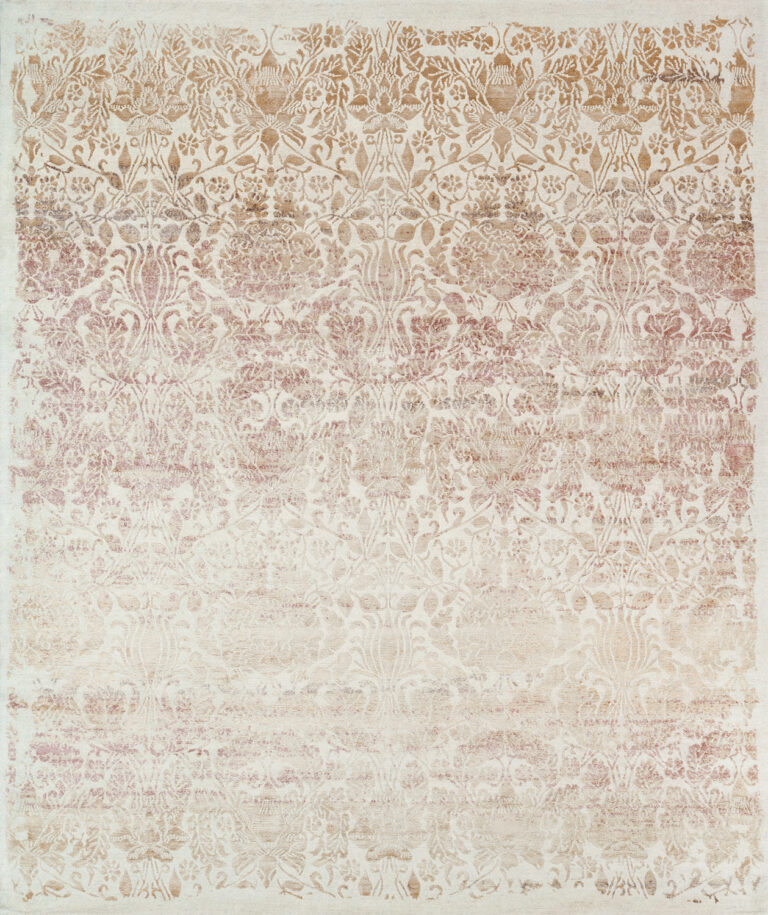 Ковры из этой коллекции монохромны, на шерстяном поле проступает изысканный шелковый орнамент. Оригинальный дизайн и разность фактур сделают этот ковер привлекательным элементом Вашего интерьера.