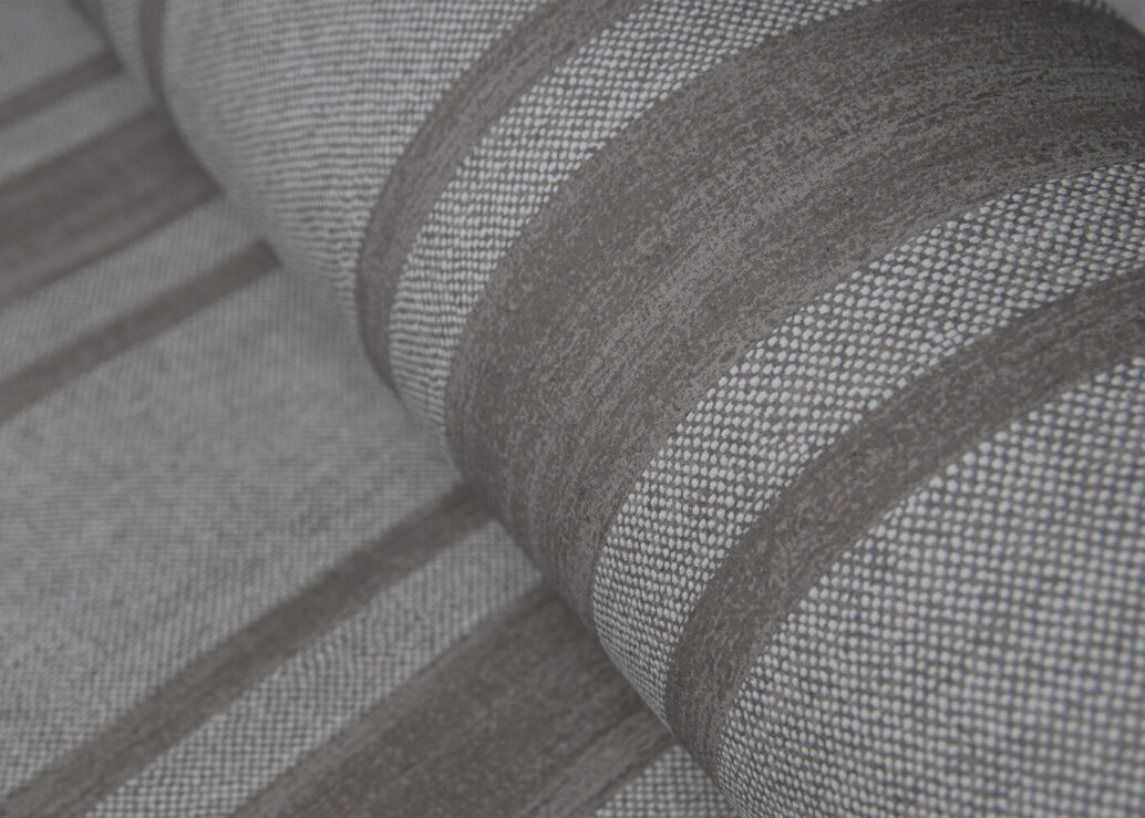 Обои с изысканной льняной текстурой и полосатым узором в различных цветовых комбинациях, от тонких оттенков одного тона до ярких контрастов.