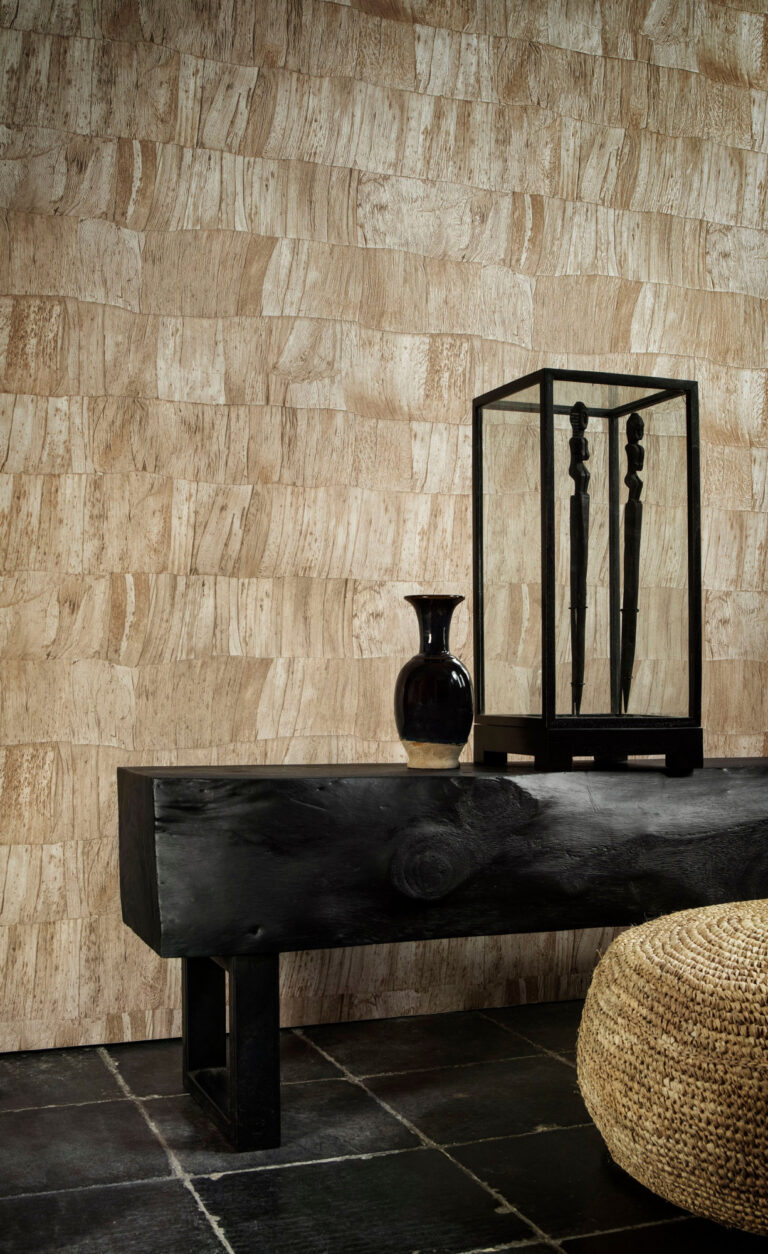 Перекрывающиеся листья банана создают спокойное целое, поскольку полоски неразличимы. Этот полуоднотонный принт очаровывает своей композицией из плиток и мягким, выраженным рельефом.