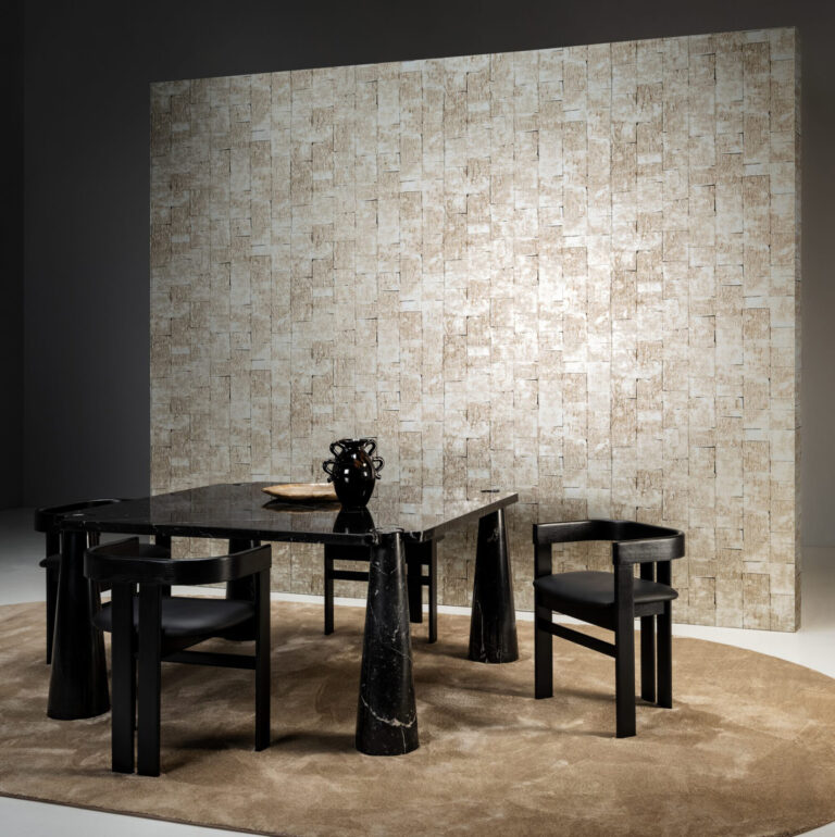 - Стиль: Этот ослепительный дизайн в металлических цветах, вдохновленный сусальным золотом, отсылает к блестящим материалам, которые были в моде в послевоенной Японии.