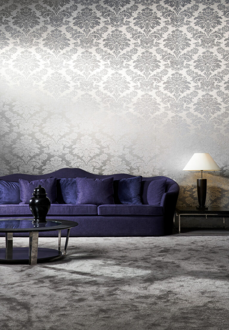 • Стиль: Настенное покрытие из настоящей металлической фольги с эффектом окисления и принтами в тон, некоторые из них с покрытием из сатинового лака или стеклянных бусин.