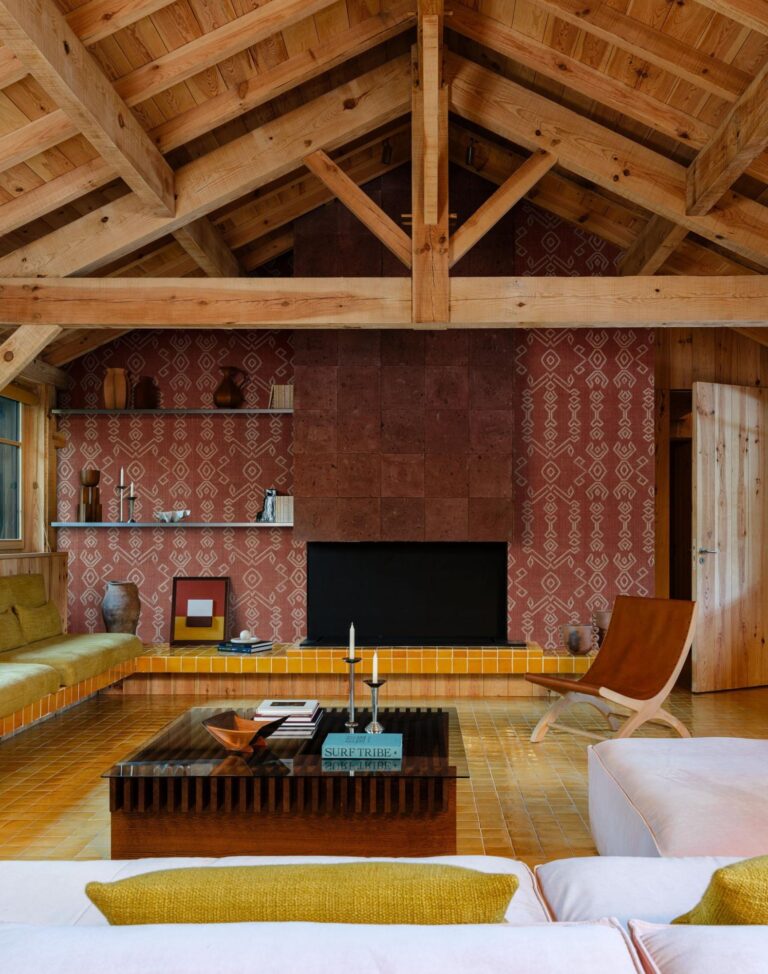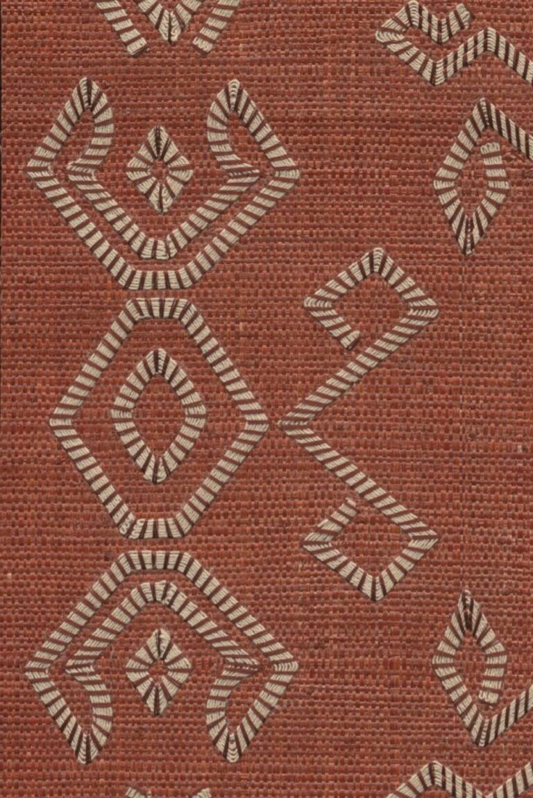 • Стиль: Тканые обои из рафии, на которые вышит узор из мешковины.