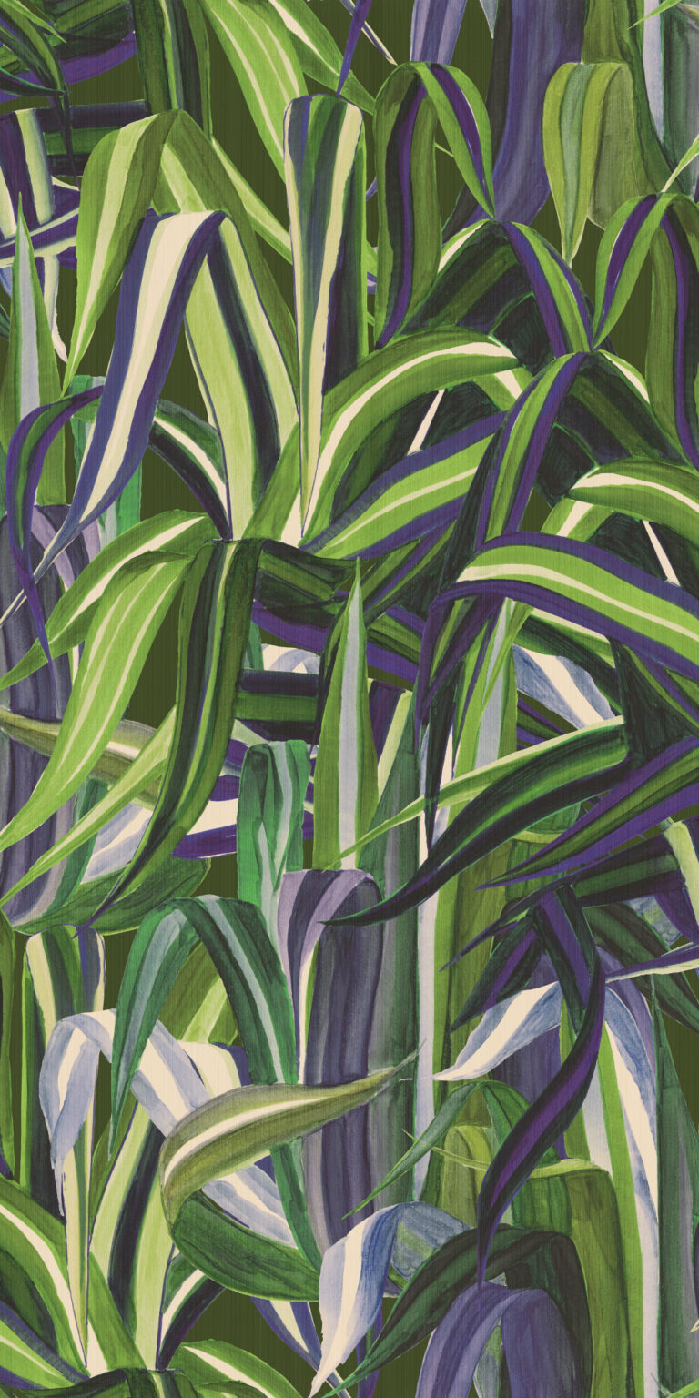 Буйный ботанический дизайн тропических листьев с ощущением ручной росписи. Напечатаны в ярких цветах на джутовой ткани fil-à-fil. Они придают стене беспрецедентную глубину и особенно естественный вид.