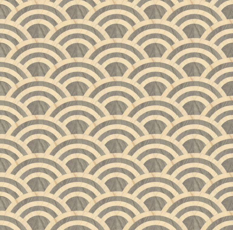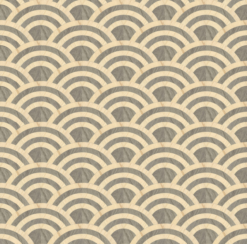 Перекрывающиеся буквы O, созданные из маркетри из деревянного шпона, напоминают набегающие волны океана. Уникальный узор Seigaiha, символизирующий волны воды, означает удачу, силу и стойкость.