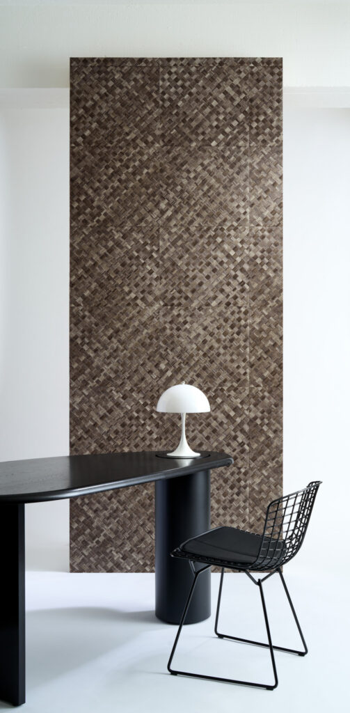 Мозаичная структура плетения вдохновлена панданом — растением, широко применяемым для ткачества в Азии.