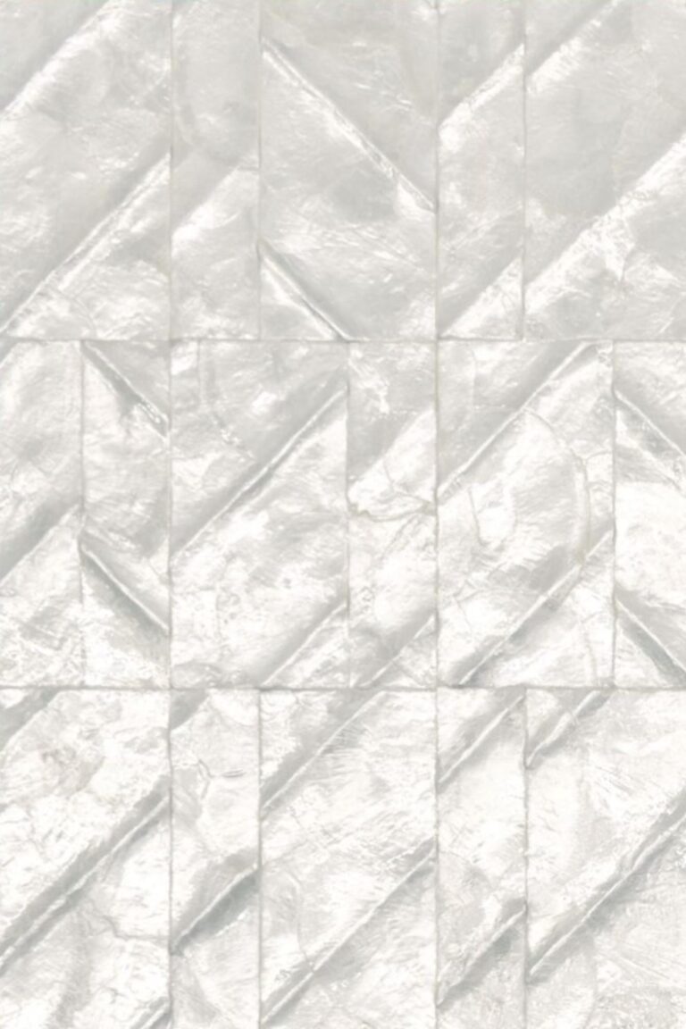Компактные, неровные блоки прямолинейного узора придают стене глубину и современный характер. Сдержанная цветовая палитра подчёркивает утончённую элегантность.