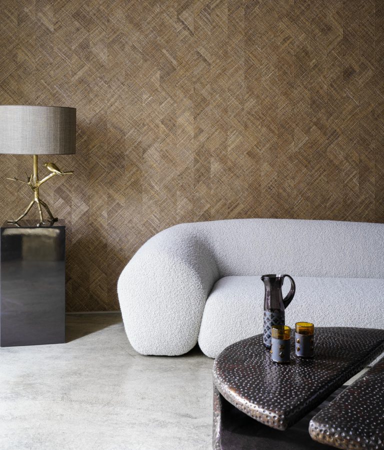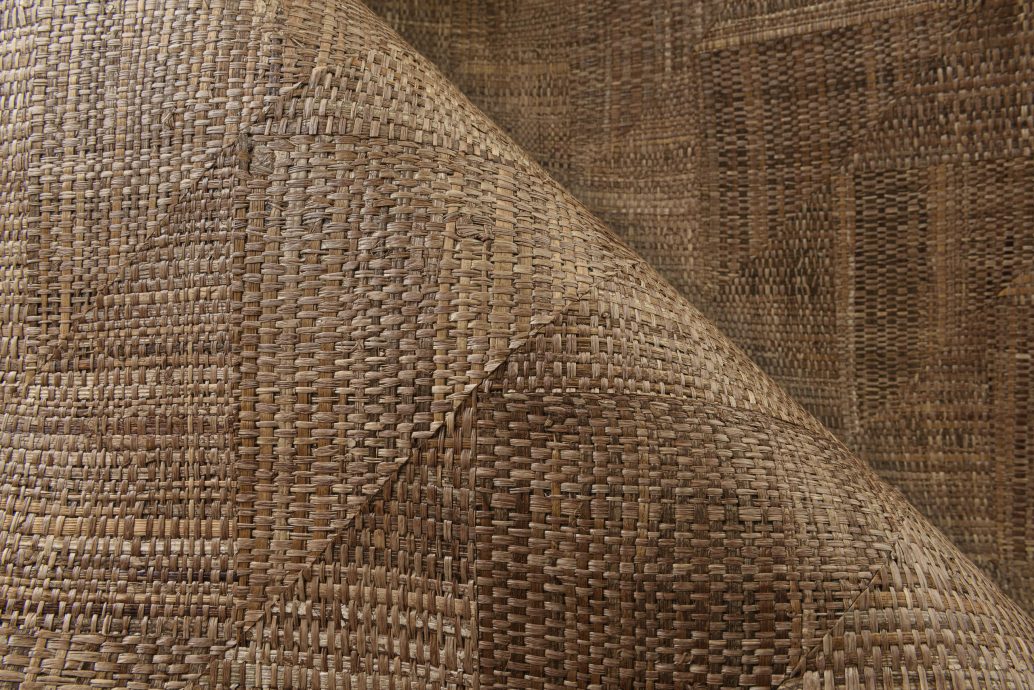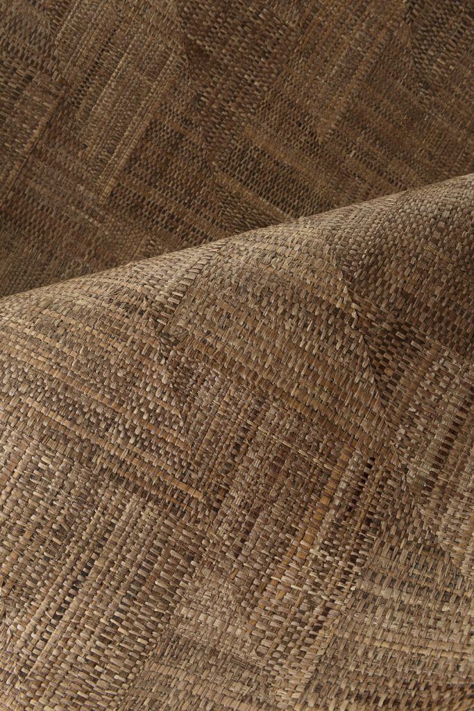 Rutile создаётся из широких полос вручную сотканной рафии, инкрустированных так, чтобы образовать динамичный рисунок. Разнонаправленные линии и насыщенные оттенки дают яркий, почти кристаллический эффект. Дизайн назван в честь рутилизированного кварца — минерала, известного отражением света и тонкими линейными структурами — и передаёт то же ощущение многослойности и природной утончённости. Широкие полосы вручную сотканной рафии инкрустированы в динамичный рисунок. Поверхность выглядит насыщенной и выразительной. Натуральные настенные покрытия на флизелиновой основе