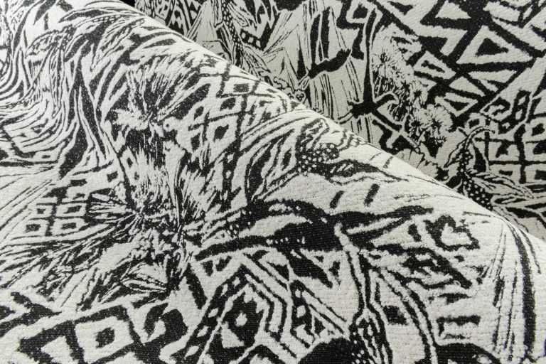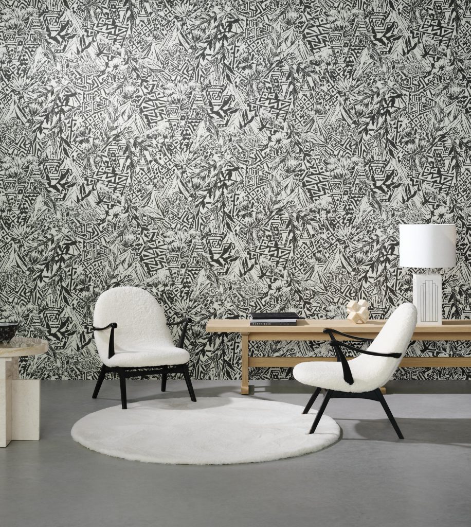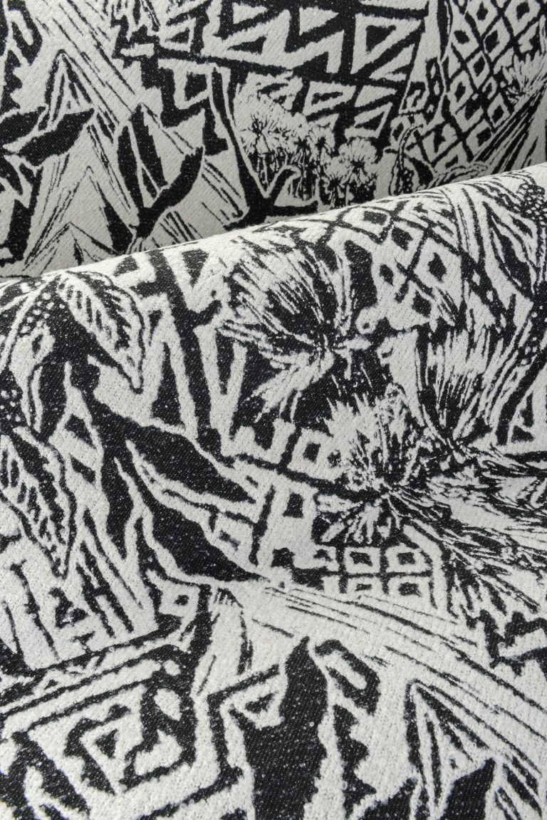 Этот декор вдохновлён величественной Сьерра-Невадой: стилизованные горные вершины, орлы и дикие цветы объединены в выразительный орнамент. Дизайн оживает благодаря роскошному жаккардовому букле-плетению. Стилизованный дизайн с североамериканскими мотивами, выполненный в технике жаккардового букле. Текстура придаёт узору рельефность и живость. Текстильное настенное покрытие на флизелиновой основе