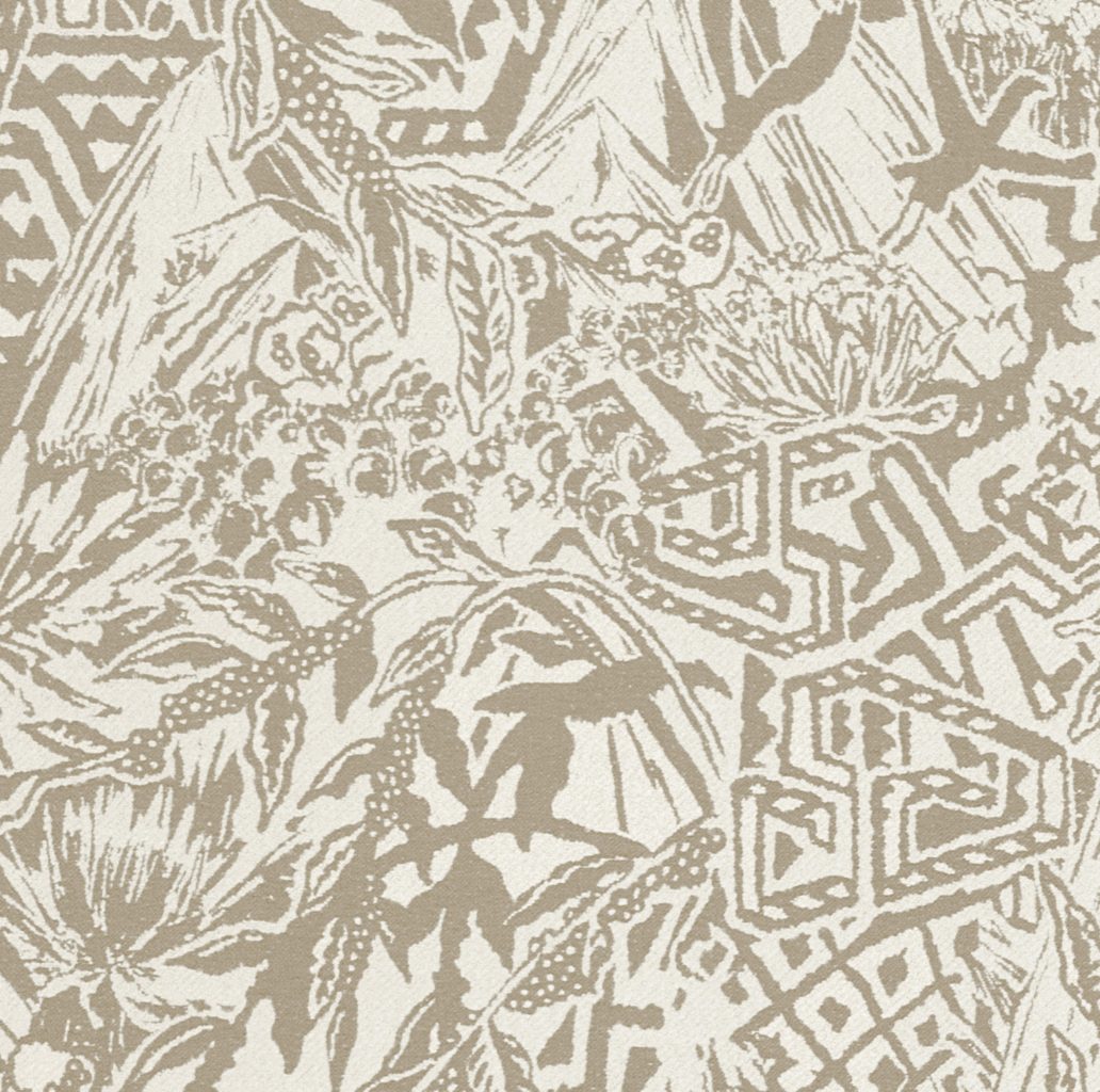 Этот декор вдохновлён величественной Сьерра-Невадой: стилизованные горные вершины, орлы и дикие цветы объединены в выразительный орнамент. Дизайн оживает благодаря роскошному жаккардовому букле-плетению. Стилизованный дизайн с североамериканскими мотивами, выполненный в технике жаккардового букле. Текстура придаёт узору рельефность и живость. Текстильное настенное покрытие на флизелиновой основе