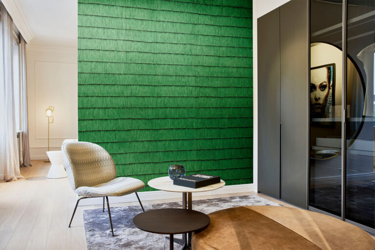 Вдохновлено яркими платьями в стиле чарльстон! Бахрома снова повсюду: в моде, ювелирных изделиях, сумках и современных интерьерах. Эти обои отличаются аутентичным фил-а-фил с мягким бархатным оттенком.