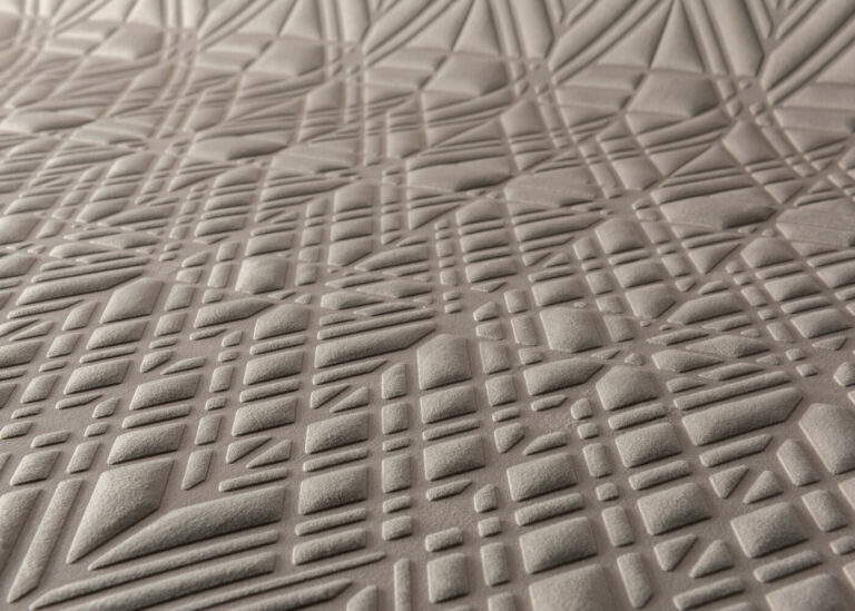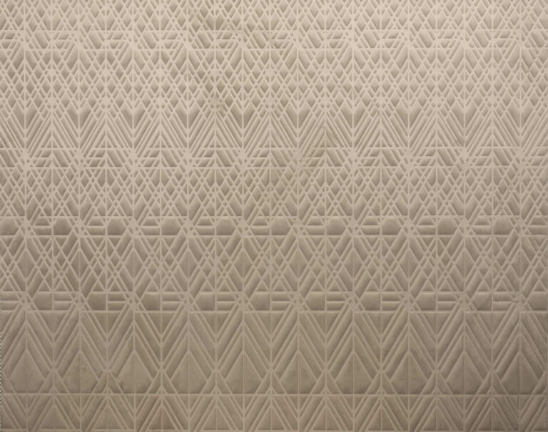 Четкая геометрия, в которой скрывается художественно выверенная игра линий. Узор проработан до мельчайших деталей, а переменная толщина рельефа создает постоянно меняющиеся узоры света.