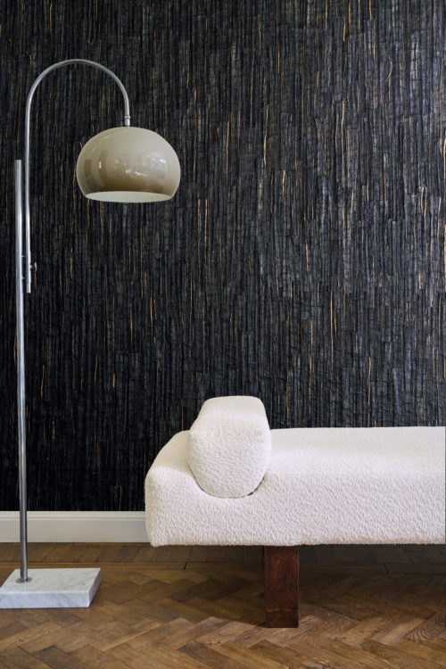Обои из волокна водяной лилии, тщательно собранные вручную и подчёркивающие мастерство и декоративность ремесленной работы.