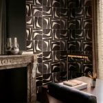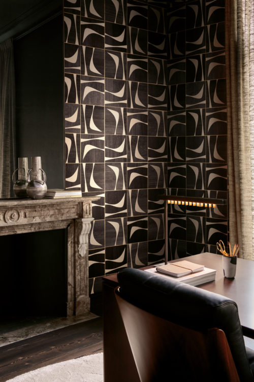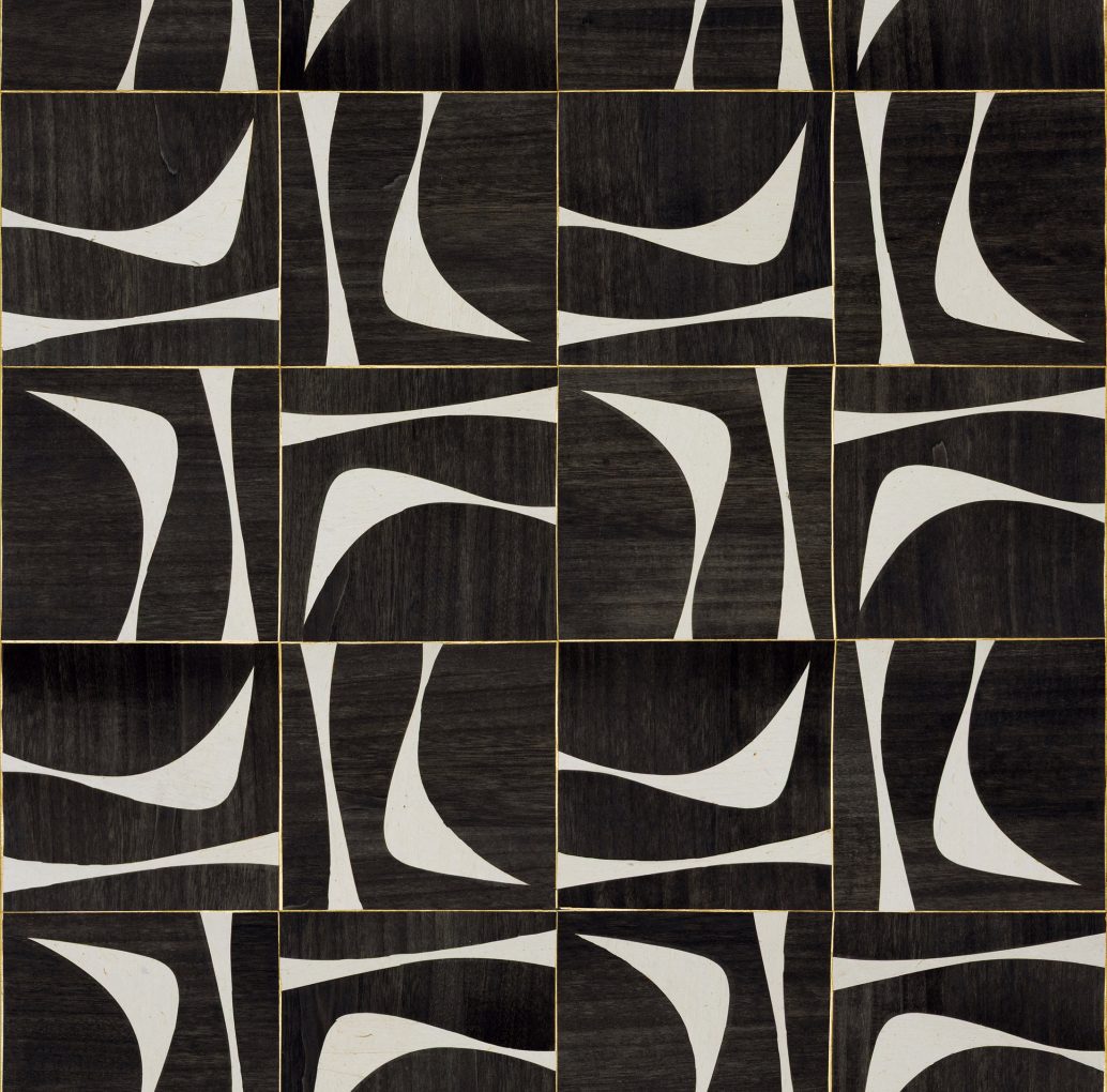 Обои с декоративной маркетри из бумаги и дерева ручной работы, рисунок которой напоминает изящный силуэт полумесяца.