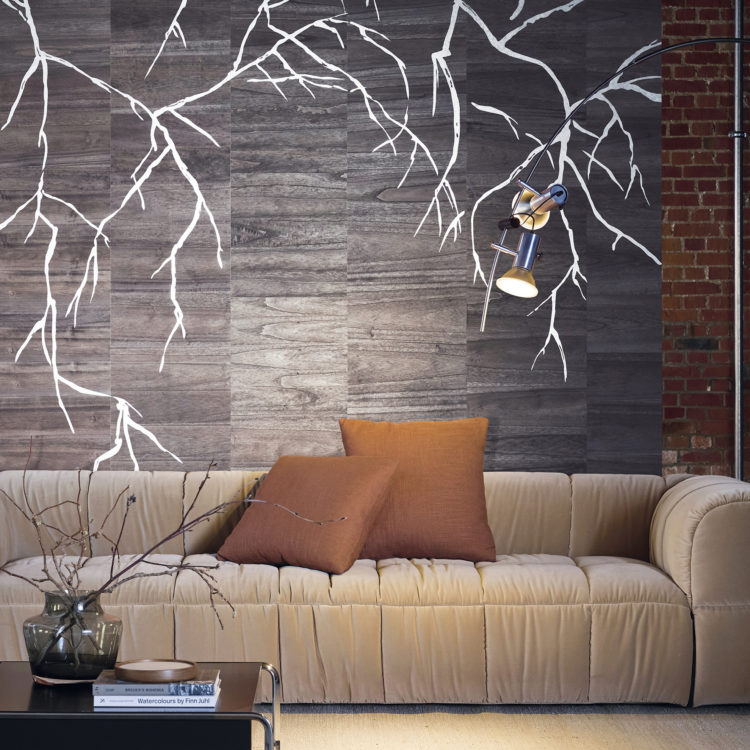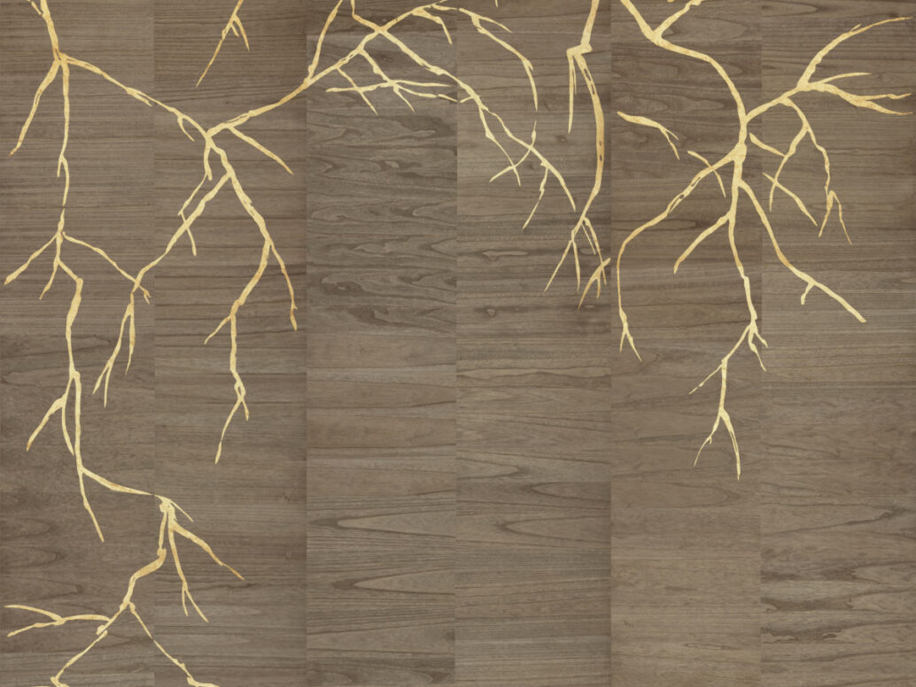 Bright: Вдохновленный японской техникой кинтсуги, тонкий металлический лист, приклеенный к дереву, напоминает ветви дерева.