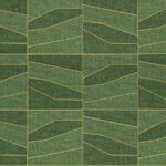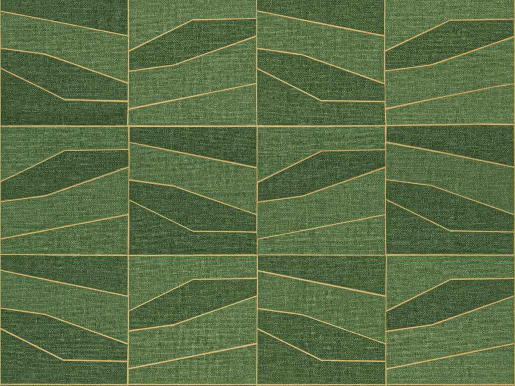 Domino: Лоскутное одеяло из бумажных волн, созданное из геометрических фигур, лежит на металлической основе, золотой или серебряной.