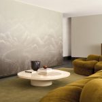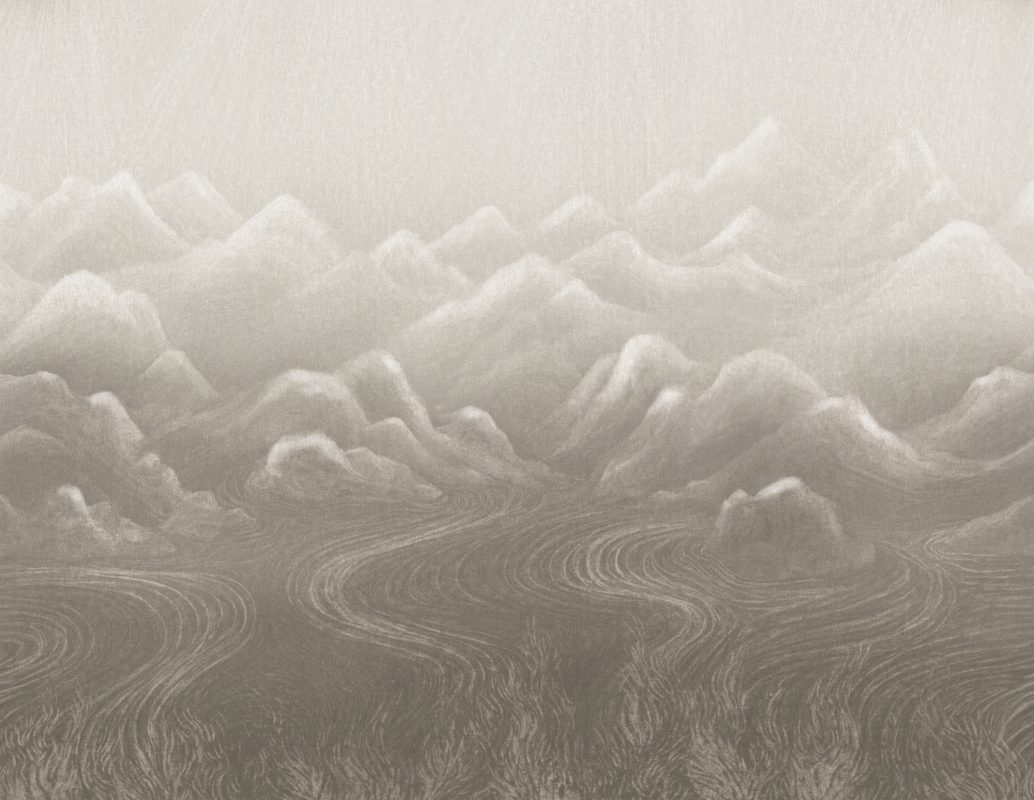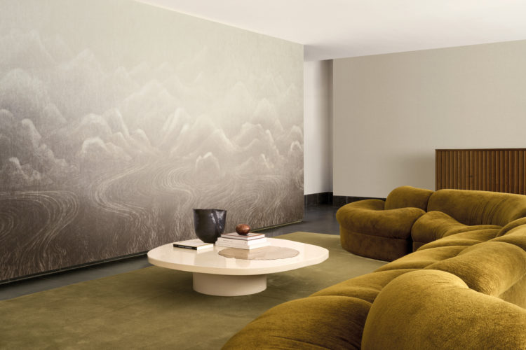 Обои с пейзажным рисунком, словно окутанным лёгкой дымкой, мягко переливаются благодаря рельефной волнистой фактуре поверхности.