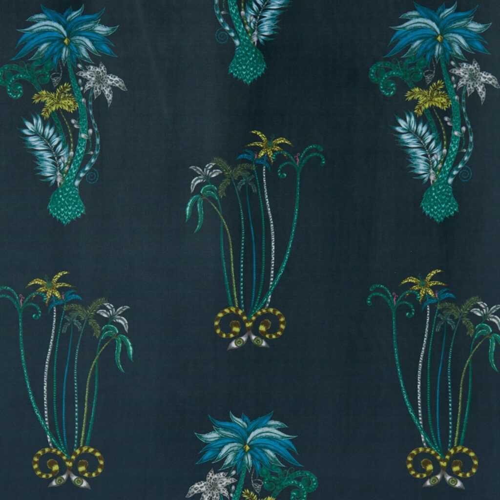 Ткань — Clarke and Clarke — JUNGLE PALMS VELVET — NAVY — F1209/01